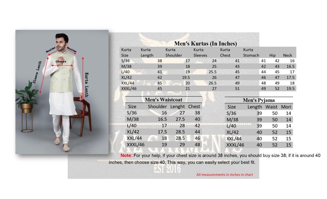 Designer Koti (waist coat / Nehru Jacket / Modi Jacket) over kurta and matching churidhar. The Kurta and Churidhar makes it a perfect outfit to suit any occasion and brings out the fashionable best in you.