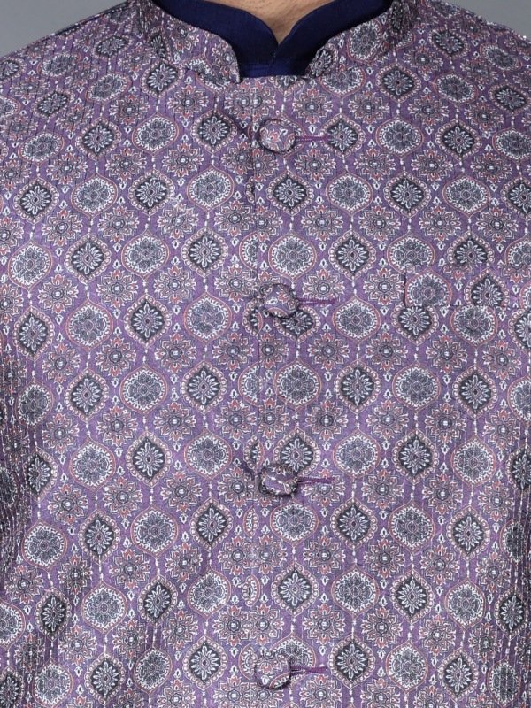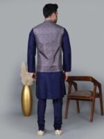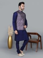 Men’s Navy Blue Kurta Churidar with Printed Purple Waistcoat