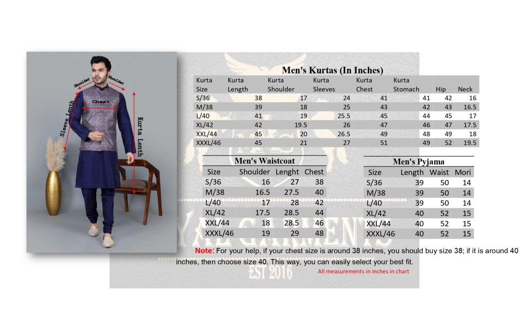 Designer Koti (waist coat / Nehru Jacket / Modi Jacket) over kurta and matching churidar. The Kurta and churidar makes it a perfect outfit to suit any occasion and brings out the fashionable best in you.